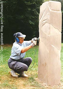 2001 "Der goldene Weg am Duffesbach - gegen den Strom geht's zur Quelle"KEK realisiert im Burgpark Hürth und entlang des Duffesbaches eine große Ausstellung im öffentlichen Raum. KEK-Künstlerinnen und Gastkünstlerinnen und -Künstler aus den Niederlanden und Deutschland setzen sich in ihren Arbeiten mit dem Thema Wasser in seinen Erscheinungsformen bis hin zum Abwasser und im Besonderen mit dem Hürther Duffesbach und seiner Geschichte auseinander. Zur Ausstellung entwickelte KEK ein umfangreiches Begleitprogramm.